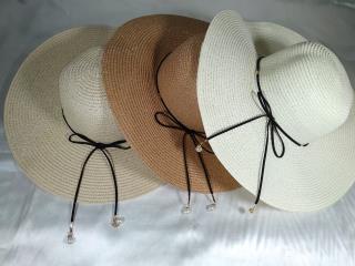 Topi wanita dengan desain yang unik dan terdapat sabuk tali hitam dan terdapat mutiara