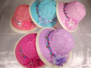 Topi anak dengan desain yang unik dan terdapat hiasan bunga ditengahnya membuat penampilan anda terlihat cantik