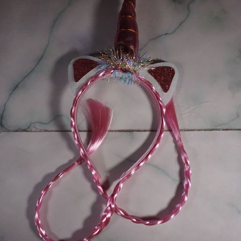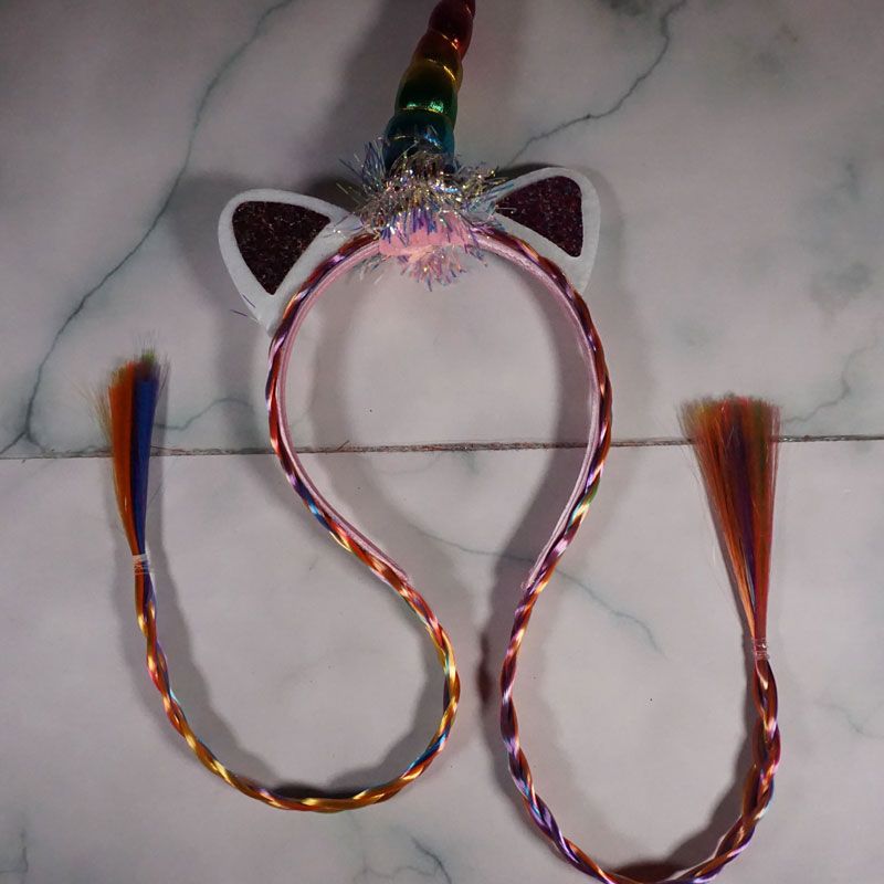 Bando Unicorn dengan hiasan rambut kepang disampingnya membuat penampilan anak terlihat canrik