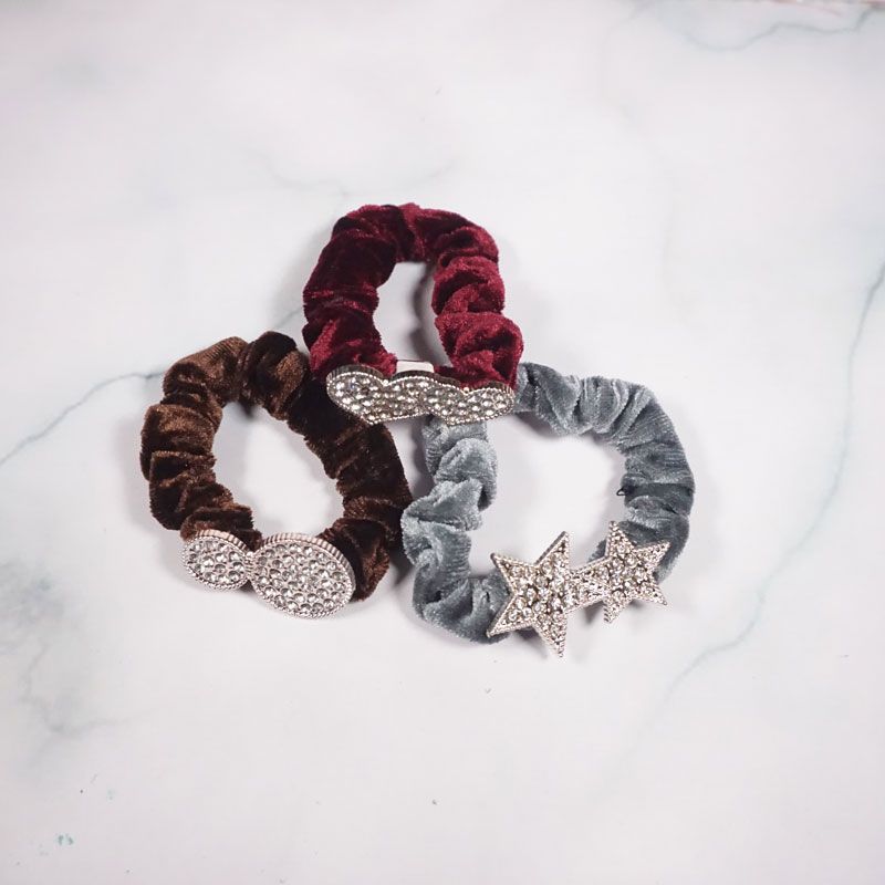 Ikat rambut dengan desain bludru yang lembut  serta memiliki motif yang beragam di tengahnya