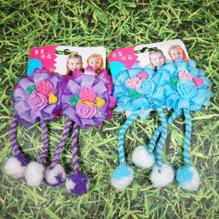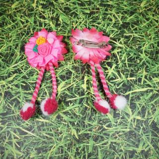 Jepit pita anak dengan desain bunga serta terdapat pom pom membuat penampilan anak terlihat cantik