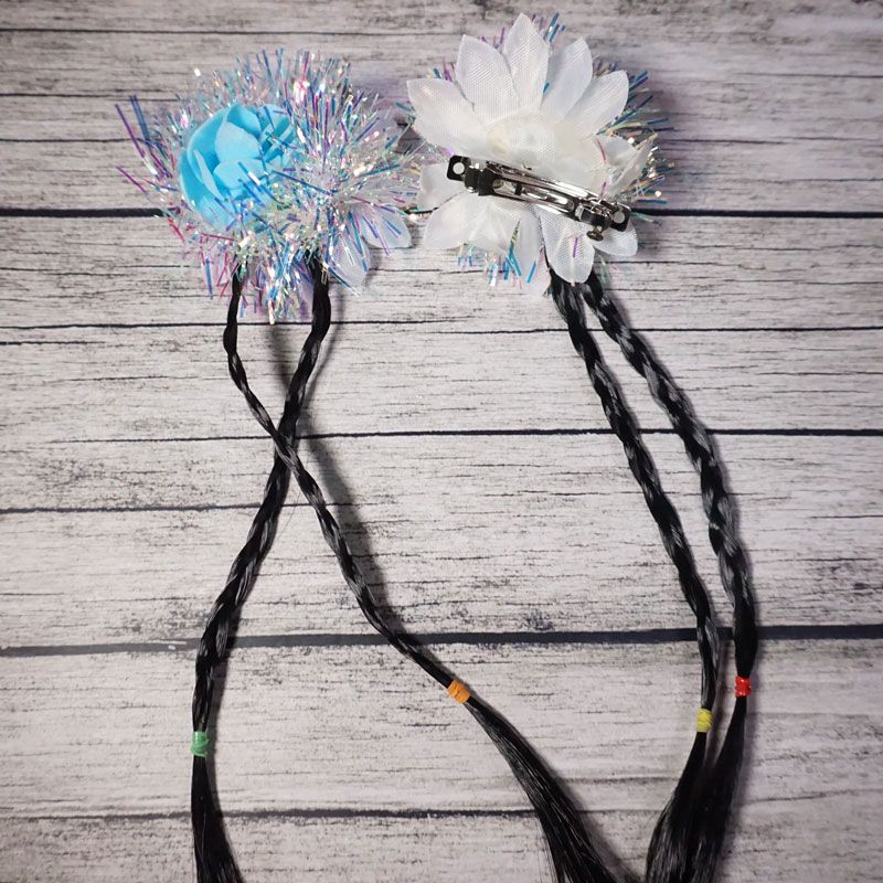 Jepit pita anak dengan hiasan bunga di tenghanya serta terdapat hiasan rambut kepang sintetis