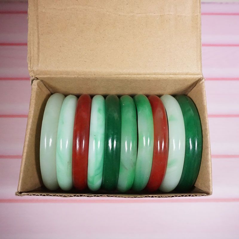 Gelang giok dengan desain bulat dan memiliki berbagai macam warna