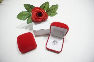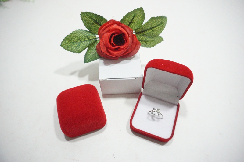 Tempat cincin dengan bentuk kotak dan bahan yang lembut