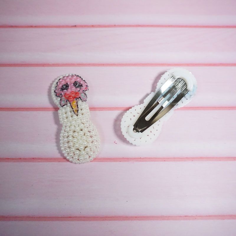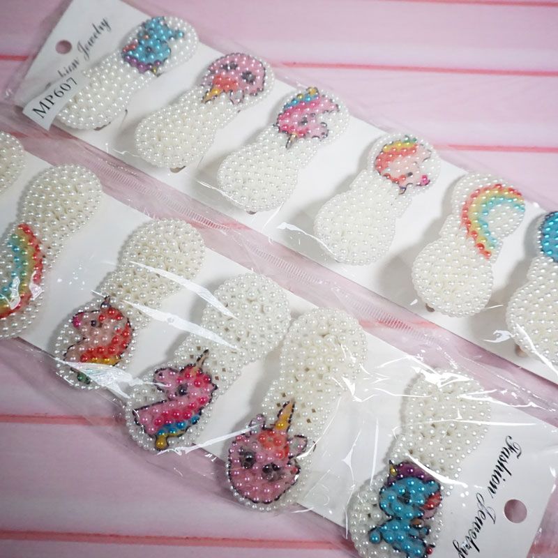 Jepit rambut dengan dilengkpai mutiara diatasnya dan terdapat gambar unicron
