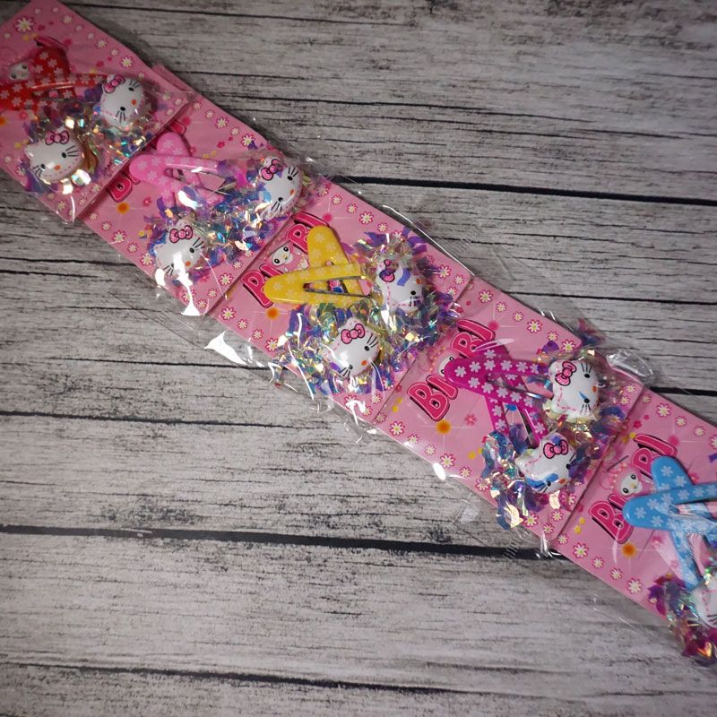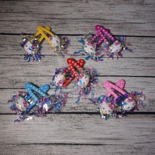 Jepit rambut dengan desain yang unik dan terdapat hiasan hellokitty membuat penampilan anak terlihat cantik