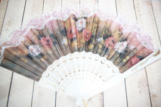 Kipas batik dengan hiasan bunga bunga dan dapat dijadikan sebagai souvenir