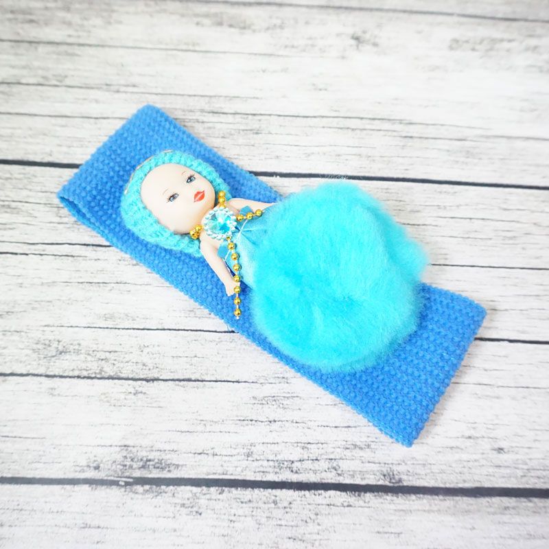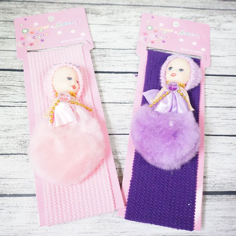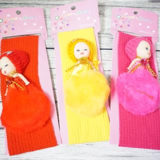 Bandana dengan bahan yang halus dan lembut serta terdapat hiasan boneka diatasnya