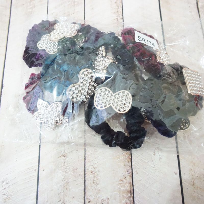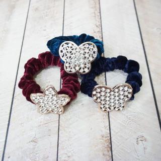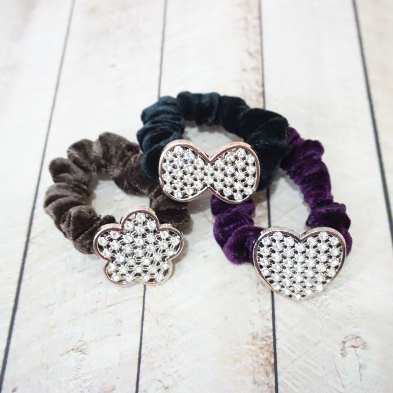 Ikat rambut dengan desain bludru yang lembut dan terdapat hiasan yang unik ditengahnya
