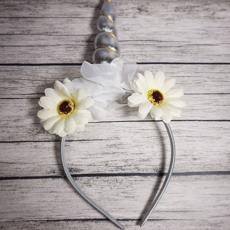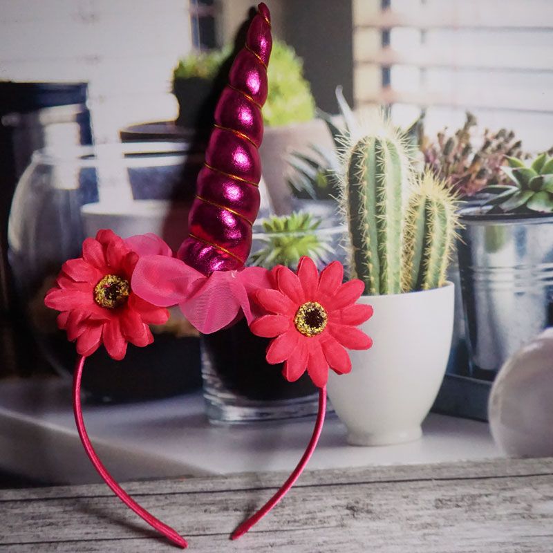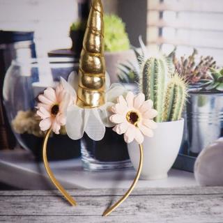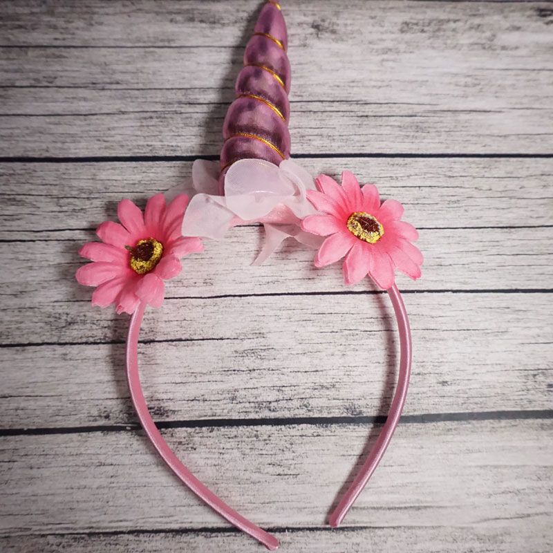 Bando unicorn dengan desain yang unik dan terdapat hiasan bunga ditengahnya membuat penampilan anak terlihat cantik
