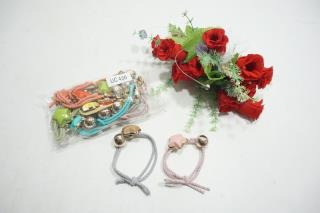 Ikat rambut polos dengan bahan yang tebal serta terdapat hiasan bandul bentuk unik di tengahnya ;;