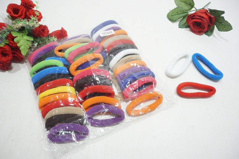 Ikat rambut polos dengan bahan yang tebal serta terdapat hiasan bandul bentuk unik di tengahnya