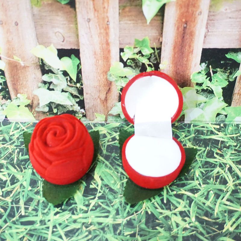 Tempat cincin dengan desain mawar daun dan berbahan bludru