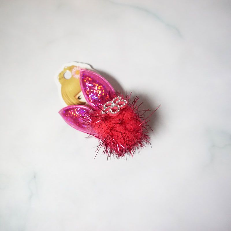 Ikat rambut pom pom yang lembut membuat penampilan anak terlihat cantik