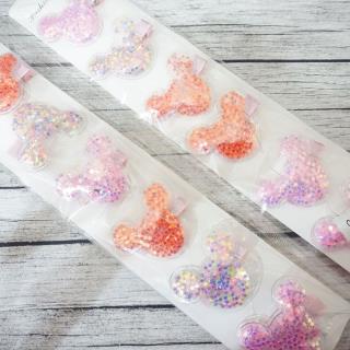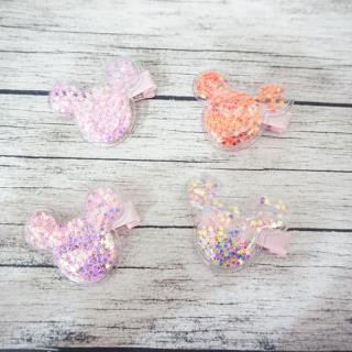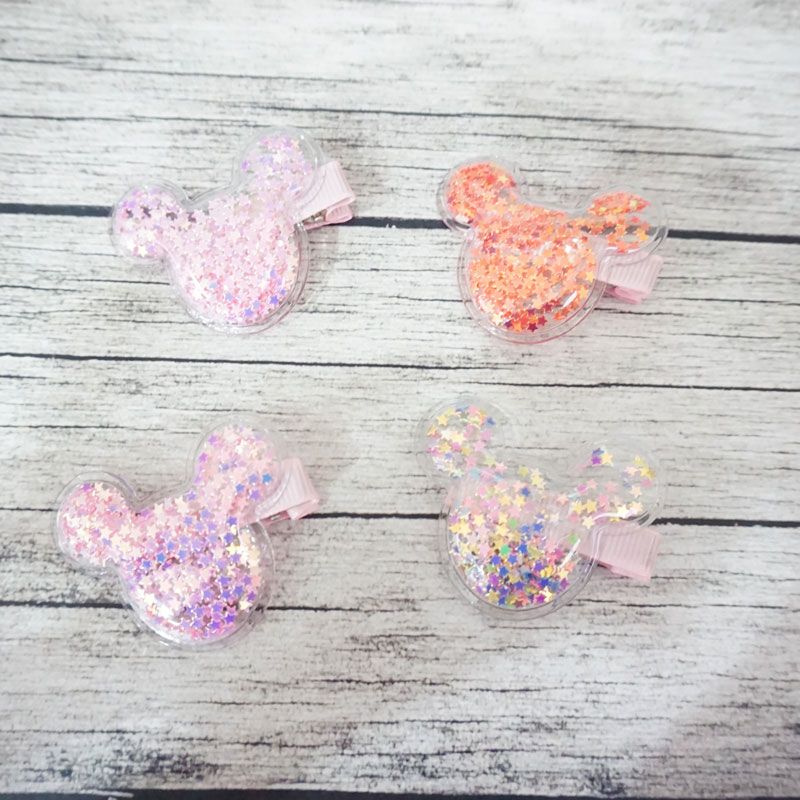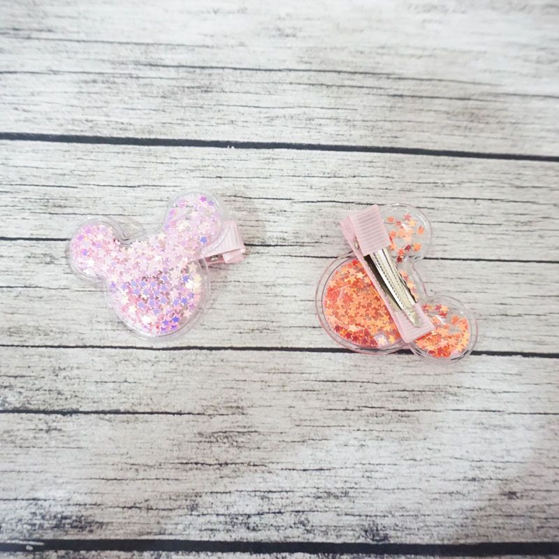 Jepit rambut dengan desain mickey mouse membuat penampilan anak terlihat cantik