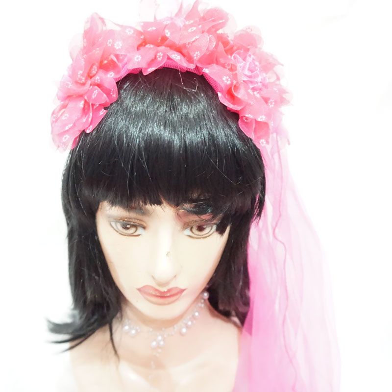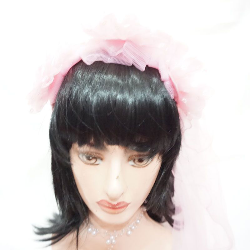 Bando pengantin rumbai dengan hiasan bunga bunga diatasnya membuat penampilan anak terlihat cantik