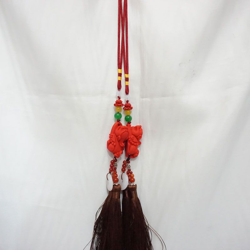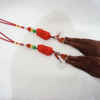 Hiasan tali merah dengan aksen batu di tengahnya dapat digunakan sebagai hiasan rumah dan mobil