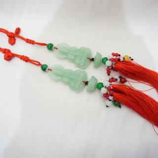 Hiasan tali merah dengan akses batu giok ditengahnya dapat digunakan sebagai hiasan rumah dan mobil