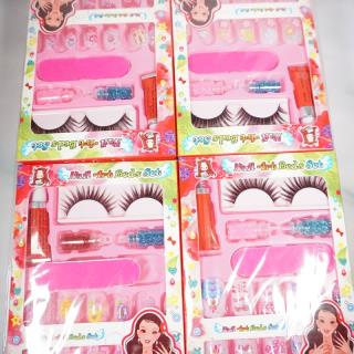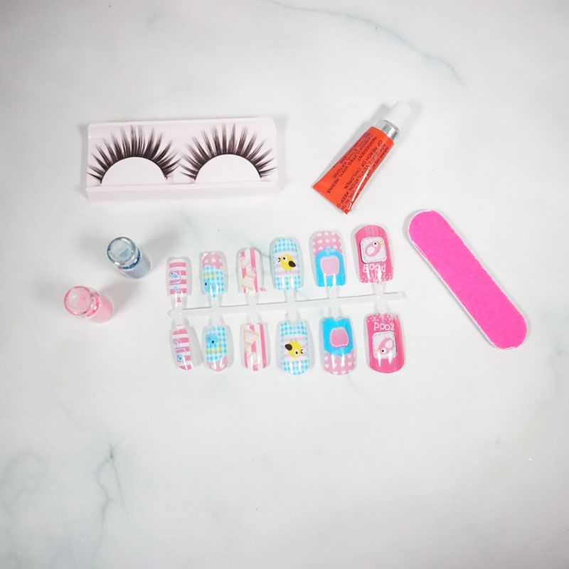 Kuku palsu dengan beragam warna dan motif dilengkapi dengan bulumata dan menicure