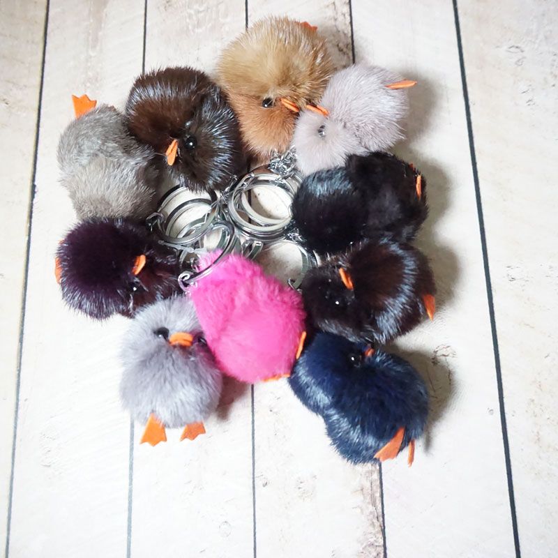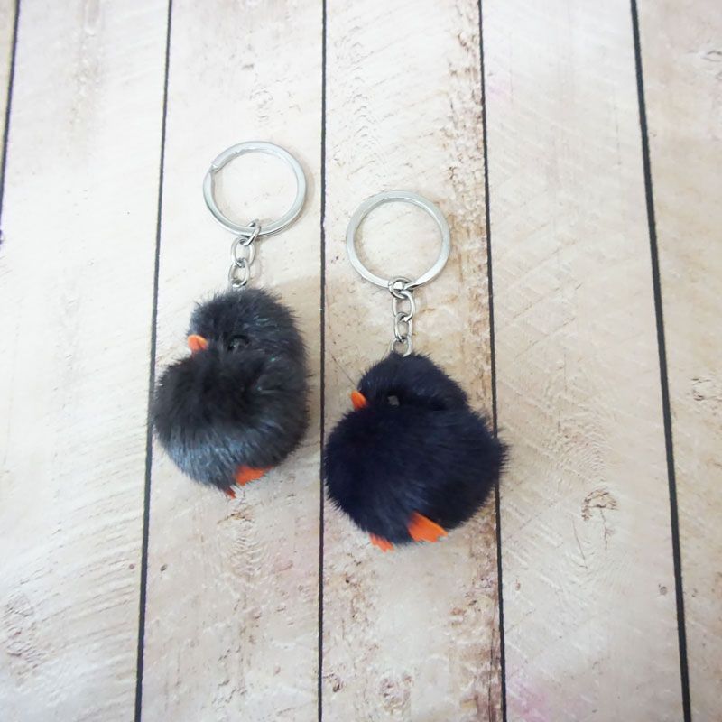 Gantungan kunci bulu dengan desain bebek dan memiliki beragam warna