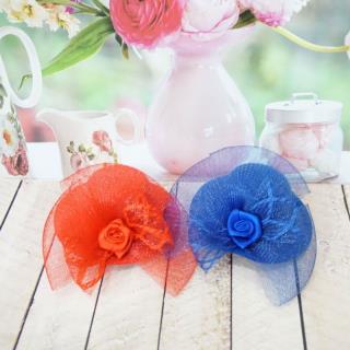 Jepit topi dengan desain yang unik dan terdapat hiasan bunga diatasnya membuat penampilan anda terlihat cantik