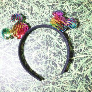 Bando dengan desain yang unik dan terdapat hiasan boneka mickey mouse membuat penampilan anak terlihat cantik