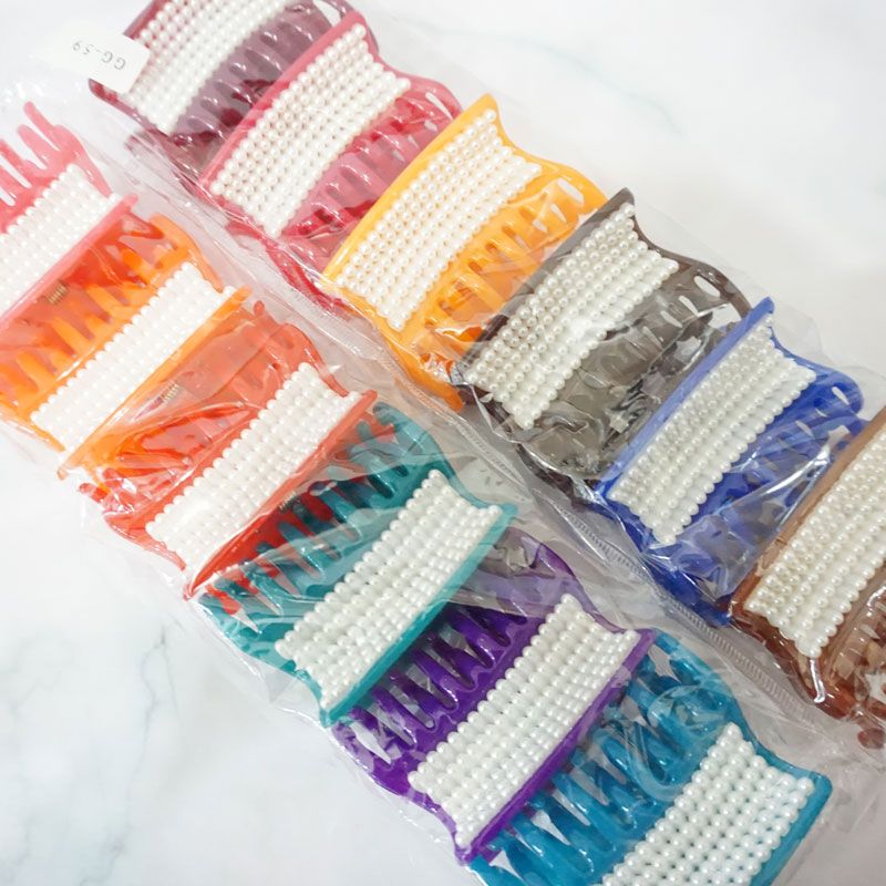 Jepit rambut dengan desain yang unik dan terdapat hiasan mutiara membuat peampilan anda terlihat cantik