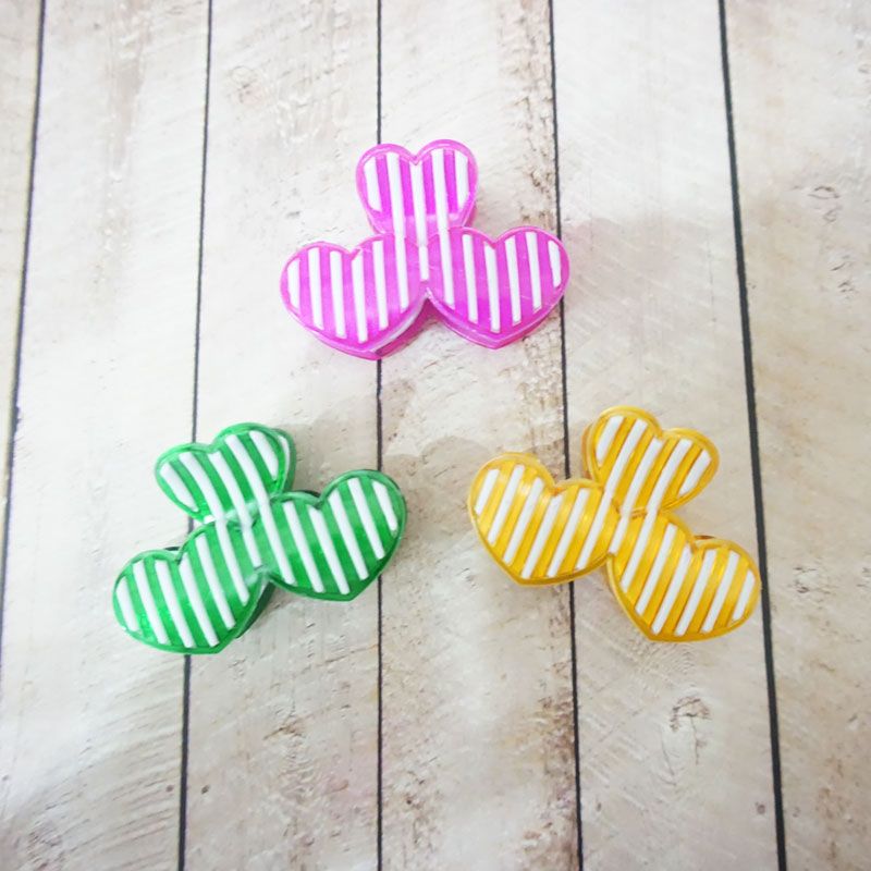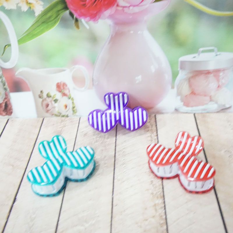 Jepit rambu dengan desain love dan terdapat corak garis garis pada jepit membuat penampilan anda terlihat cantik
