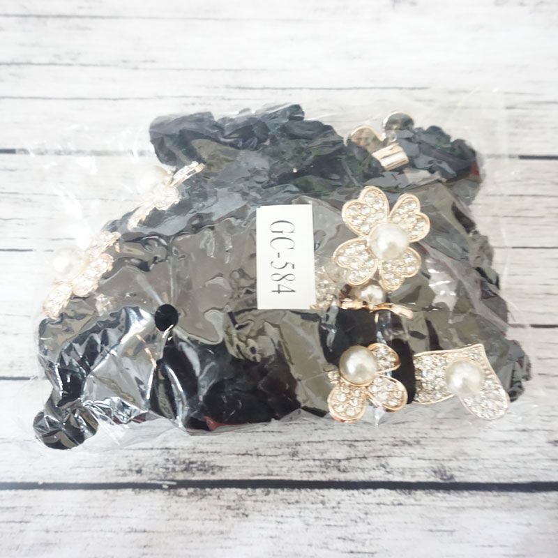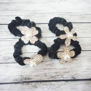 Ikat rambut dengan bahan bludru yang lembut dan terdapat hiasan mutiara di tengahnya membuat penampilan anda terlihat cantik