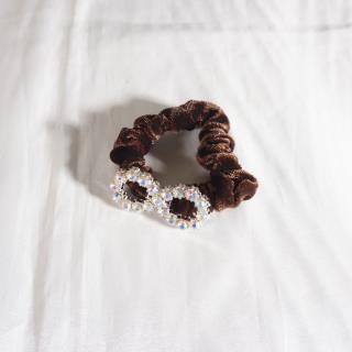 Ikat rambut bludru dengan bahan yang halus dan terdapat hiasan mutiara di tengahnya membuat penampilan anda terlihat cantik