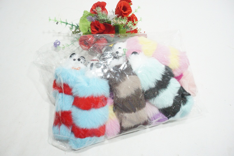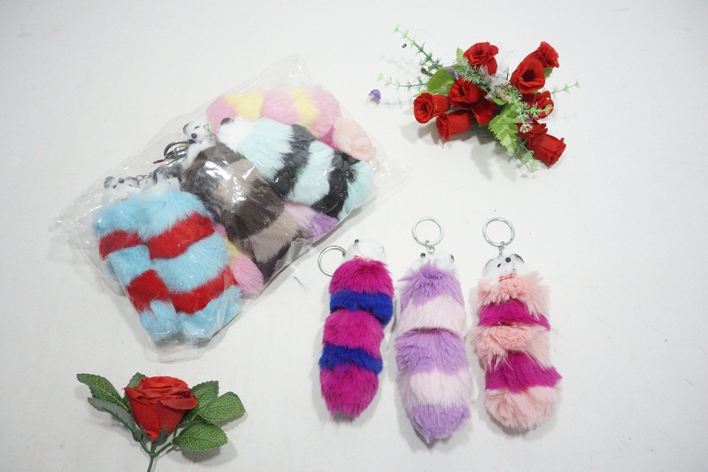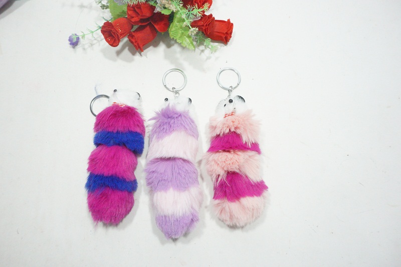 Gantungan kunci bulu dengan desain yang unik dan dapat digunakan untuk aksesoris tas ;