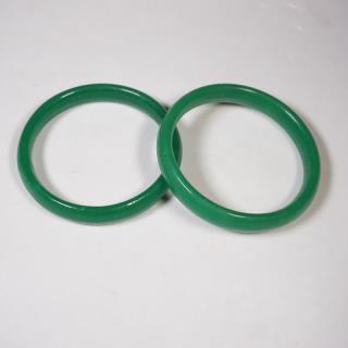 Gelang giok dengan bentuk gepeng dan berwarna hijau