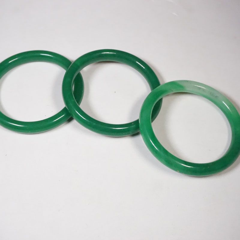 Gelang giok dengan bentuk bulat dan berwarna hijau