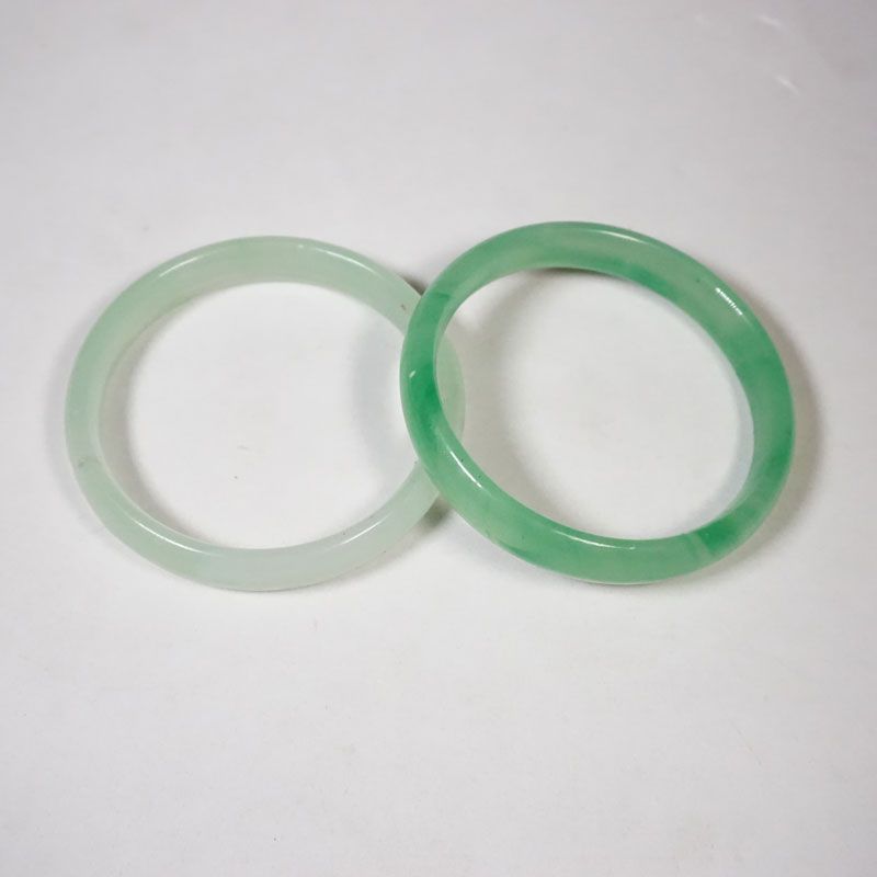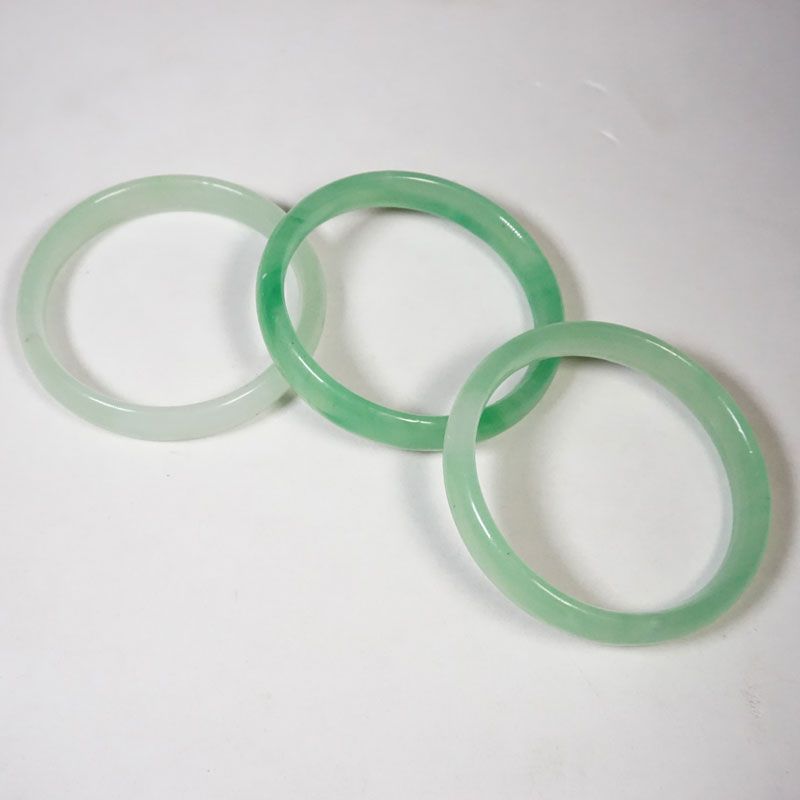 Gelang giok dengan bentuk Gepeng dan berwarna hijau